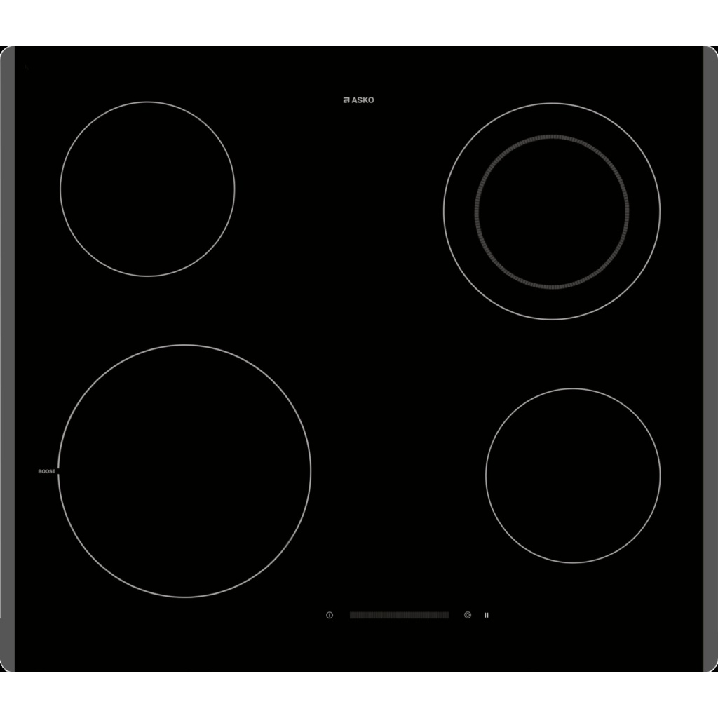 3 zona HiLight Majtas përpara: Ø 21 cm, 2,1/3 kW, Djathtas përpara: Ø 14,5 cm, 1,2 kW, Majtas mbrapa: Ø 14,5 cm, 1,2 kW, Djathtas mbrapa: dy unaza me Ø 12/18 cm, 0,7/1,7 kW