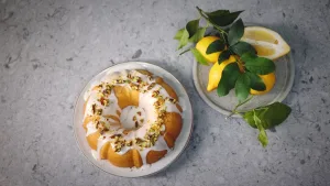 Kek me limon dhe fistikë të karamelizuar – shoqërimi perfekt për çajin e pasdites